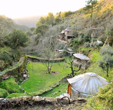 A warm, natural place in a forested valley, dotted with yurts. A permaculture inspirited farm with many different fruit bearing trees and plants. People and animal welcoming you to experience true calmness. A place to slow down, unwind, and reconnect with yourself, with Mother Earth, and with each other by sharing stories and knowledge.